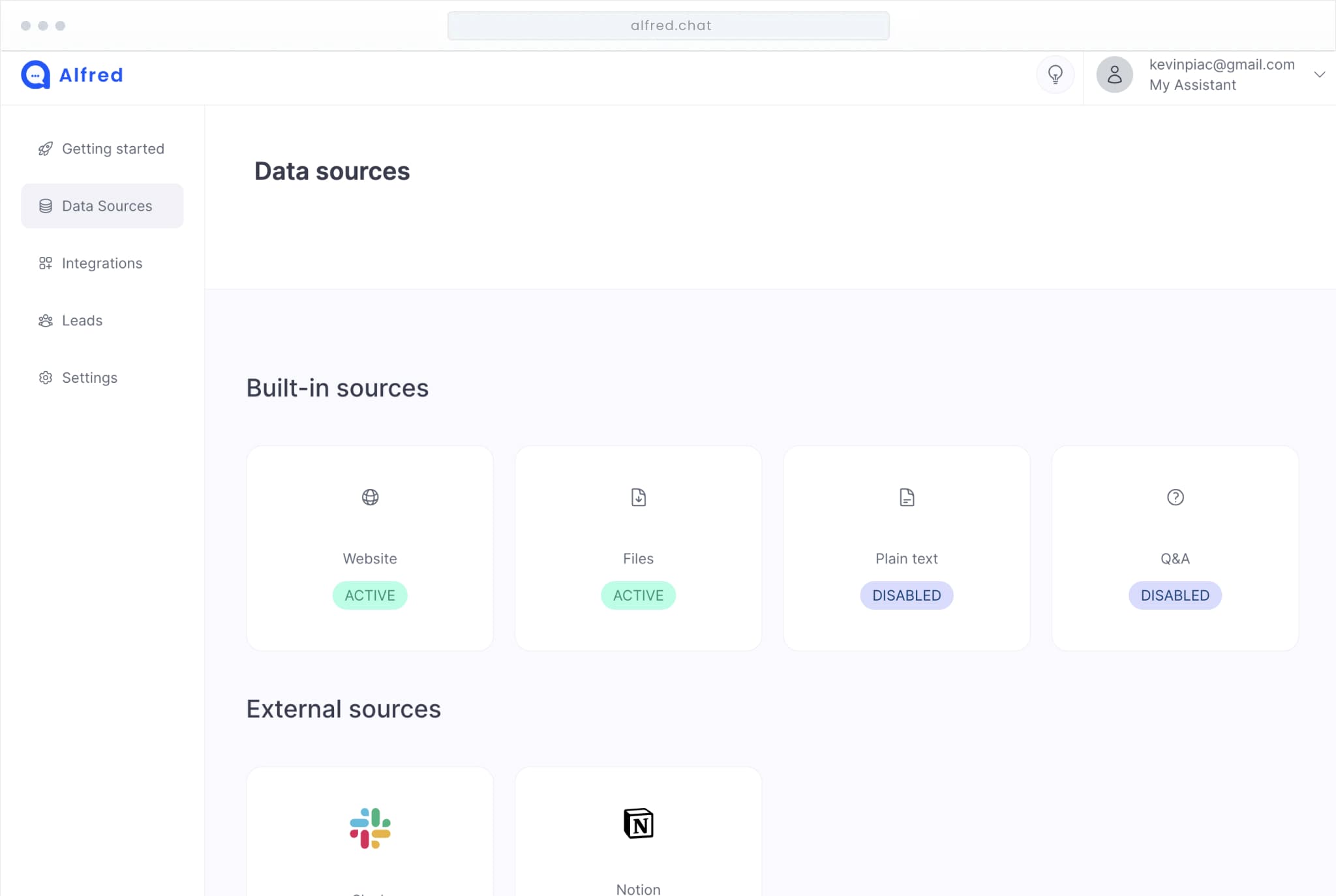 Alfred will automatically synchronize with your data sources so he stays up to date and can answer questions about your application.