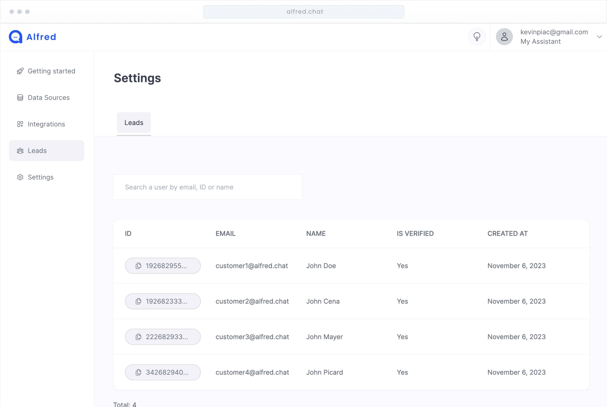 The best way is to reach out using our own Alfred assistant on the bottom right corner. You can also email our CEO at kevin@tryalfred.chat